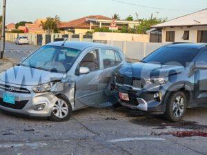 Diamars atardi a drenta informe di un aaccidente cu hende herida na e crusada Rudol Arendsstraat cu Weststraat, mesora a dirigi tanto polis como ambulans na e sitio. Na yegada di e patruya a bin compronde cu aki ta trata di un accidente unda cu e chauffeur di un Hyundai i10 biniendo for di pariba no a para pa duna preferencia na e Kia Seltos for di Weststraat y nan a dal den otro. E chauffeur a baha for di e Hyundai y a bandona e sitio mientras e dama den e Kia a resulta herida. Na yegada di e ambulans nan a atende e dama levemente herida.