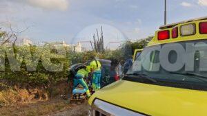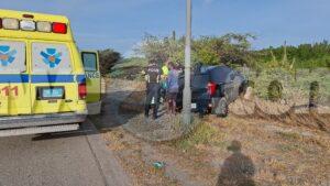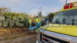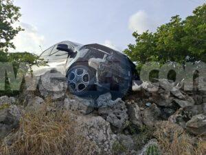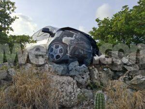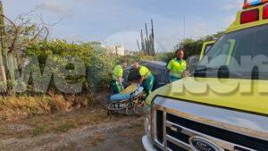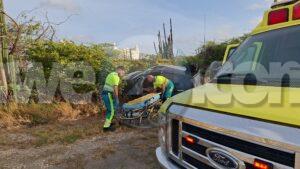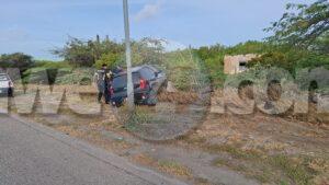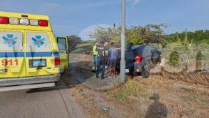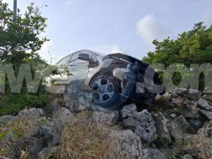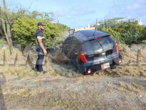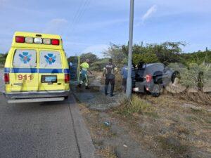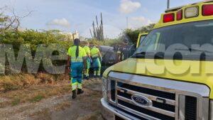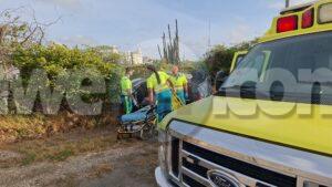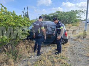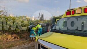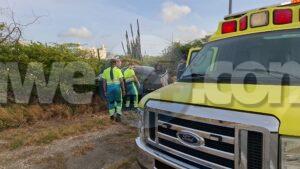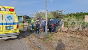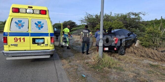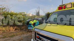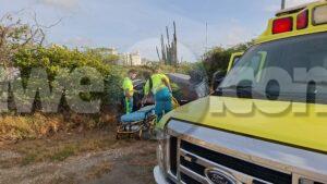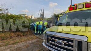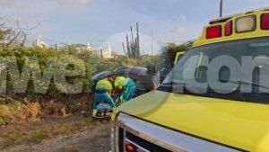 Diadomingo mainta a drenta informe di un accidente cu hende herida riba Sasakiweg, mesora a dirigi tanto polis como ambulans na e sitio. Na yegada di e patruya a bin compronde cu probablemente e dama chauffeur cansa of pega soño a baha caminda na man drechi y a bay subi un monton di piedra riba otro y a resulta herida. Na prome instante polis a spanta ya cu e dama chauffeur no tabata responde. UN rato despues ela bin bij y na yegada di e ambulans nan a atende y transporte pa hospital.