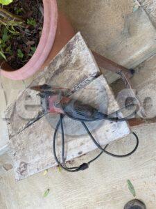 Homber cortando mata cu “grinding machine” a corta su brasa cu e machine