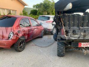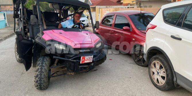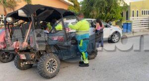 Diamars mainta a drenta informe di un accidente cu hende herida den Neptunestraat, mesora a dirigi tanto polis como ambulans na e sitio. Na yegada di e patruya a bin compronde cu e chauffeur di un U.T.V. Honda Pioneer 1000 a bay banda robes di caminda y a bay dal riba un Nissan March staciona pusha esaki bay dal tras di un Ford Escape. Debi na e impacto e chauffeur di e U.T.V. a resulta herida cu un kap basta profundo na su cabes. Na yegada di e ambulans nan a atende e victima y a transporte pa hospital. Hunto cu e chauffeur tabata tin tambe un “puppy” den e U.T.V. cu no a resulta herida pero si tabata hopi spanta. Ademas polis a haya un substancia parecido na droga den e auto.