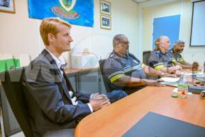 Na comienso di e luna aki, e presidente di VNO sr.Vincent Storimans y Senior Policy Advisor di VNO sr.Matthijs van Beusekom a bishita Cuerpo Policial Aruba.