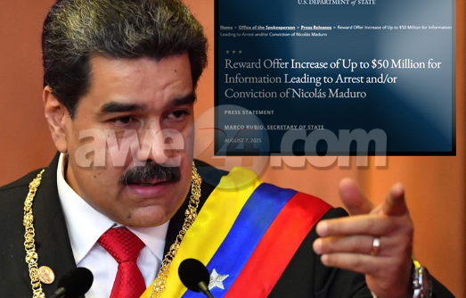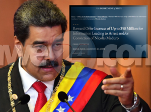 E Departamento di Estado y e Departamento di Justicia ta anunciando un aumento den e oferta di recompensa di hasta $50 miyon bao di e Programa di Recompensa pa Narcoticonan (NRP) pa informacion cu lo conduci na e aresto y/of condena di Nicolas Maduro pa a viola e leynan di narcotica di Merca. Durante mas di un decada, Maduro ta un lider di e Cartel de los Soles, cual ta responsabel di e trafico di droga pa Merca. Dia 25 di juli 2025, e Departamento di Tesoro di Merca a designa e Cartel de Los Soles como un Terrorista Global Especialmente Designa (SDGT).
