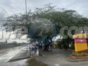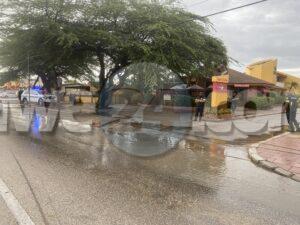 Diabierna mainta un oficial si bombero a nota chispanan di candela dilanti Smith & Dorlas na De La Sallestraat y mesora a bati alarma y a dirigi tanto polis, bombero y hasta Elmar pa bini na e sitio. Na yegada di e patruya a nota e situacion cual debi na e yobida e mata di kwihi a sak y a kibra 2 waya di coriente cu a cay den un plas di awa y tabata chispa candelanan di coriente. Na yegada di Elmar mesora nan a kita e coriente anto a haci esaki sin a kita coriente di Smith & Dorlas cu a keda funciona sin problema te ora a resolve e problema.