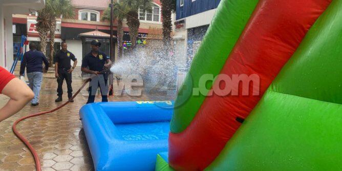 Na e actividad di Ban Bek Caya tin un recreacion cu tin awa y si muchanan ta bay aden nan lo muha sigur nan curpa y paña. Bay cu un serbete por si acaso.