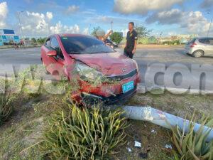 Diadomingo mainta a drenta informe di un accidente cu hende herida na e rotonde di Cumana, mesora a dirigi tanto polis como ambulans na e sitio. Na yegada di e patruya a bin compronde cu aki ta trata di un accidente unda cu un dama den un Kia Rio bayendo trabao tabata bini di Morgenster y a subi e rotonde pero no a mira e Lexus cu tabata pasando riba e rotonde y e Kia Rio a dal e Lexus e impacto aki a bira e Rio bay dal un palo di lus basha abao. Debi na e impacto e dama chauffeur di e Rio a resulta herida. E dama chauffeur di e Lexus como e auto a keda den caminda a hala esaki un banda. Na yegada di e ambulans nan a atende e victima y a transporte pa hospital.