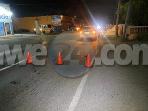 Diasabra anochi a drenta informe di un accidente dilanti di Botica Di Servicio Noord, mesora a dirigi un patruya na e sitio. Na yegada di e patruya a bin compronde cu aki ta trata di un accidente unda un dama chauffeur coriendo cu un Honda Accord bayendo nort di un manera of otro a hala mucho na su man robes y a bay dal e spiel di e Toyota Yaris di direccion contrario. Despues di e accidente aki e dama chauffeur di e Honda a bandona e sitio 2 biaha e prome cu e auto y di 2 biaha na pia pero asina mes ela bolbe. Afortunadamente ningun hende a resulta herida.
