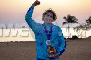 Kaj mes ta duna di conoce di ta contento cu e logro aki, unda cu apenas 18 aña di edad e ta logra su prome medaya Panamericano. Na mesun momento e ta indica di no ta satifescho y ta cla pa sigui entrena pa asina mehora como atleta di Vela y logra mas resultado pa Aruba.