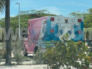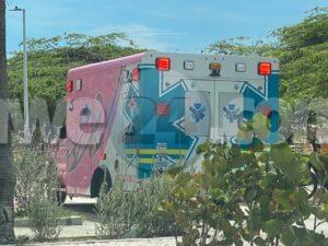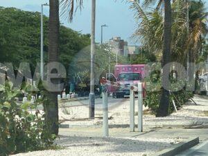 Dialuna atardi ora cu Meteo a midi 33.1 grado mientras na poco mas nort a registra cierto momento 36 grado, por lo menos un turista a raporta di a haya un “heat stroke”, mesora a dirigi un ambulans na e sitio. Na yegada di e ambulans a haya e turista su temperatura tabata exageradamente halto y meaora a atende y transporte pa hospital.