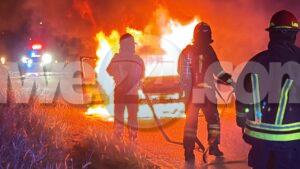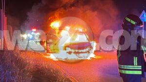 Diahuebs anochi a drenta informe di cu tin un auto na candela na Sabana Blanco, mesora a dirigi tanto polis como bombero. Na yegada di e patruya ya caba a haya e auto full na candela y cu lo ta trata di un candela aparentemente intencional. Na yegada di bombero mesora a inicia cu un combate duro y directo asina a logra domina e candela. Na e momentonan ey e propietario no tabata na e sitio. Ta trata di un Ford Escort cual a kima por completo. E color ta desconosi y e number ta 3 cifra so por mira riba dje.