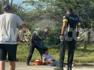 Diabierna atardi a drenta informe di un incidente na Cura Cabay Zuid unda un dama a durante un discucion a bula for di e auto den coremento, mesora a dirigi tanto polis como ambulans na e sitio. Na yegada di e patruya a bin compronde cu e dama aparentemente bao influencia den e discucion ela bula sali for di e auto y a resulta herida. Na yegada di e ambulans nan a atende e dama herida y a transporte pa hospital.