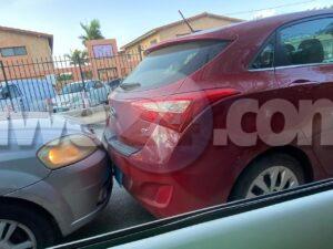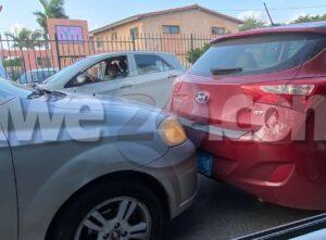 Dialuna mainta a drenta informe di un accidente pabao dibe brug di Rooi Manoonchi na Caya G.F. “Betico” Croes, mesora a dirigi un patruya na e sitio. Na yegada di e patruya a bin compronde cu e chauffeur di e Chevrolet Aveo no a regula su velocidad ni a mantene distancia a bay dal tras di e Hyundai Elantra su dilanti. Afortunadamente ningun hende a resulta herida.