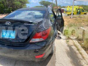 Dialuna merdia a drenta informe di un accidente cu hende herida na Avenida Milio Croes, mesora a dirigi tanto polis como ambulans na e sitio. Na yegada di e patruya a bin compronde cu aki ta trata di un accidente unda un taxista a bay brake pero a slip riba e caminda poco muha y a bay dal tras di e Hyundai Accent su tras. Debi na e impacto e dama chauffeur a resulta herida. Na yegada di e ambulans nan a atende e victima na e sitio mes.