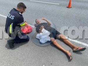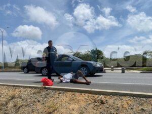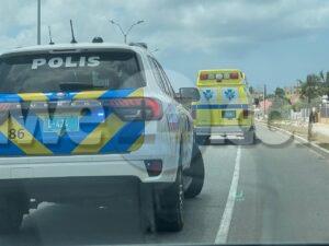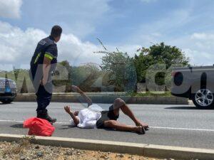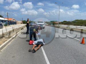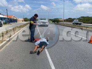 [VIDEO] Polis pasando riba E.J. “Watty” Vos Blvd. a mira homber perde balans cay abao riba caminda di Sabana Blanco