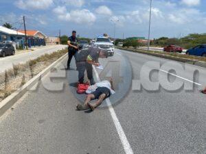 Diamars merdia ora cu polisnan di trafico tabata pasando riba E.J. “Watty” Vos blvd. a nota un homber cay mesora a para y a bay wak ta kiko a pas’e. A bin compronde cu e homber a perde balans y a cay riba caminda, mesora polis a hala e patruya para esaki poco prome cu a yega cerca e persona y a para patruya pa pidi pa ambulans. Mientras a spera pa ambulans e victima a bisa cu e tin hopi dolor na su ribchi y cu un amigo di dje a coy e placa como 500 Florin cu e lo tabata tin den su cartera. Na yegada di e ambulans nan a atende y a transporte pa hospital. Polis a tuma detaye di su denuncia y a pasa esaki pa recherche.