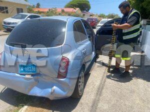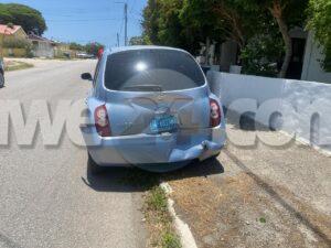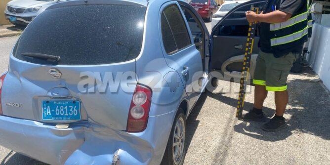 Diahuebs merdia a drenta informe di un accidente cu hende herida na Caya San Juan PabloII, mesora a dirigi tanto polis como ambulans na e sitio. Na yegada di e patruya a bin compronde cu aki ta trata di un accidente unda cu e chauffeur di un Nissan Note no a regula su velocidad ni a mantene distancia a bay dal tras di un auto Nissan March cu a para pa bay bira. Debi na e fuerte impacto e dama chauffeur den e March a resulta herida. Na yegada di e ambulans nan a atende e dama.