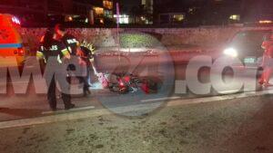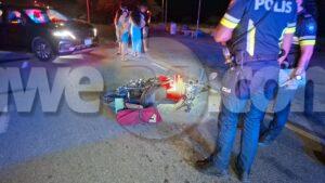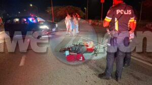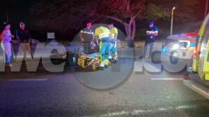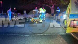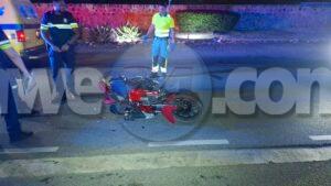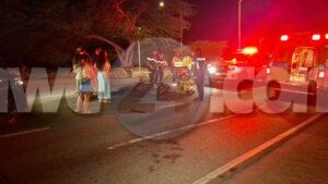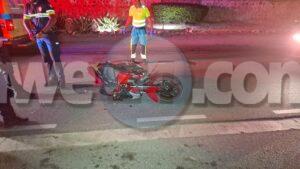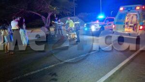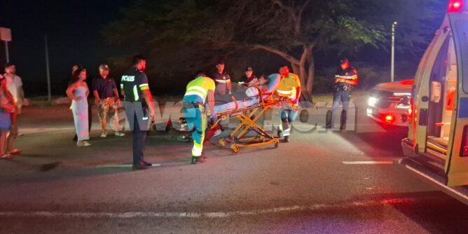 Diahuebs anochi a drenta informe di un accidente cu hende herida dilanti di Blue Residences, mesora a dirigi tanto polis como ambulans na e sitio. Na yegada di e patruya a bin compronde cu aki ta trata di un motociclista femenino cu mester a hala pa un auto y pa no dal e bus di direccion contrario a hala mas na e auto di huur cu a subi caminda y a bay dal riba e auto den banda rascando esaki. Den e esey e motociclista a dal abao y a resulta herida. Na yegada di e ambulans nan a atende e dama y a transporte pa hospital.