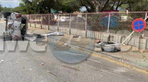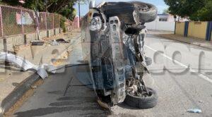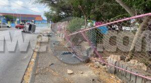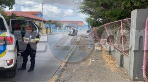 Diasabra atardi a drenta informe di un accidente cu hende herida na Van Leeuwenhoekstraat, mesora a dirigi tanto polis como ambulans na e sitio. Na yegada di e patruya a bin compromde cu aki ta trata di un accidente unda e dama chauffeur di un Toyota Vitz a perde control y a subi acera dal riba cura di waya kibra esaki dal un borchi trafico y bay bek kentel riba caminda. Debi na e impacto e dama a resulta herida. Na yegada di e ambulans nan a atende e victima.
