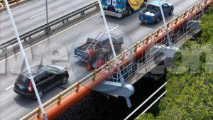 Accidente cu herido riba brug Fredis Refunjol, un pick-up a laga zink cay riba caminda y un auto a bay dal su tras y a corta e pasahero a corta su cara