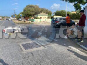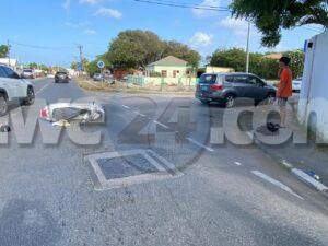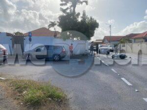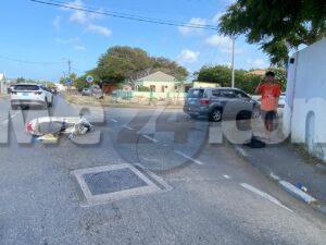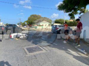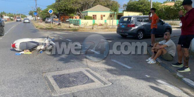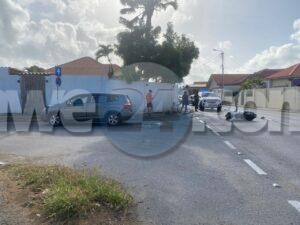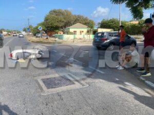 Dialuna mainta a drenta informe di un accidente cu hende herida na Prof. Lorentzstraat, mesora a dirigi tanto polis como ambulans na e sito. Na yegada di e patruya a bin compronde cu aki ta trata di un accidente unda e chauffeur di un Chevrolet a sali poco poco dilanti un scooter di pariba y esaki a bin dal riba dje. Na yegada di e ambulans nan a atende e victima na e sitio mes.
