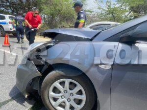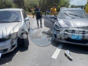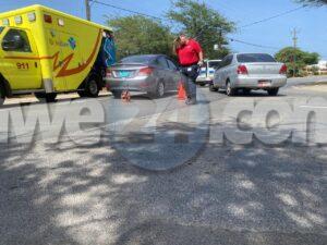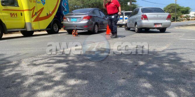 Dialuna merdia a drenta informe di un accidente cu hende herida na Bubali, mesora a dirigi tanto polis como ambulans na e sitio. Na yegada di e patruya a bin compronde cu aki ta trata di un accidente unda cu e chauffeur di un Toyota Platz no a para duna preferencia na e Hyundai Accent cu tabata riba e caminda principal di Caya Imelda Catharina Eckmeyer-Bermudez. Debi na e impacto e dama pasahero unda e impacto tabata a spanta e dama. Na yegada di e ambulans nan a atende e dama y den consulta di e ambulans cu su dokter di cas a bisa cu ta djies un susto ela haya y a atende na e sitio mes.