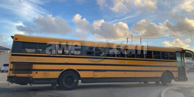 Fastioso ta ora un Bus a para blokia un crusada pa subi grupo di muchanan di school y ta stroba’bo di sigui bo caminda!