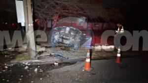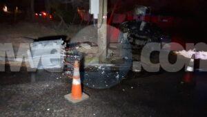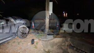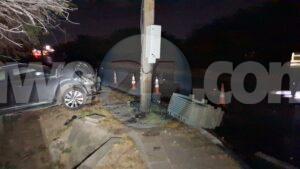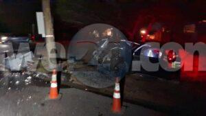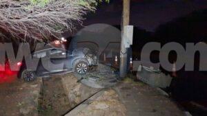Diabierna madruga a drenta informe di un accidente riba e caminda di Pos Abao pa Hato, mesora a dirigi un patruya na e sitio. Na yegada di e patruya a bin compronde cu aki ta trata di un accidente unda cu un chauffeur lo a baha caminda bay dal riba un palo di lus cu a keda para stret pero e transformer poni ariba a bini abao. Afortunadamente ningun hende a resulta herida pero e auto un Nissan Kicks Advance si a keda na werki.