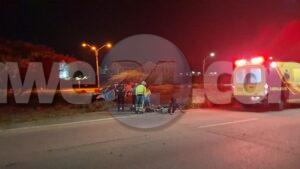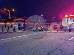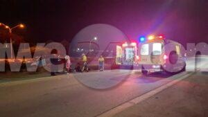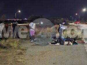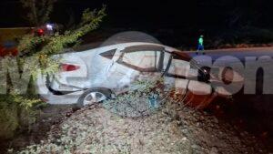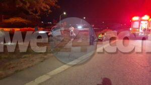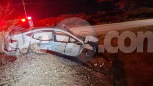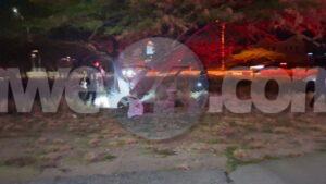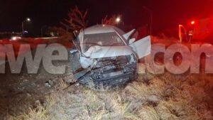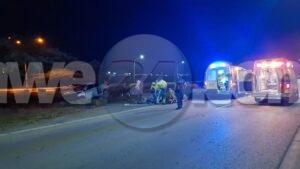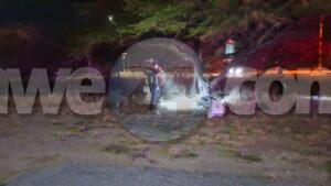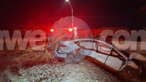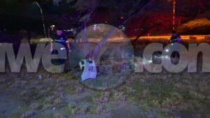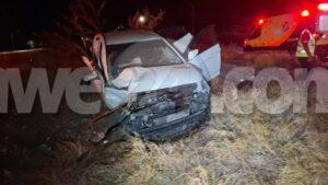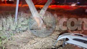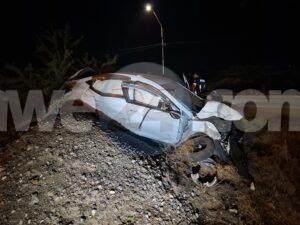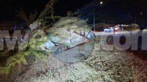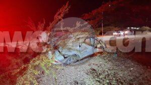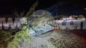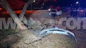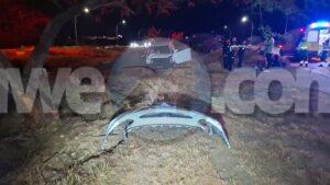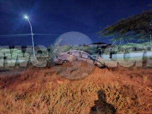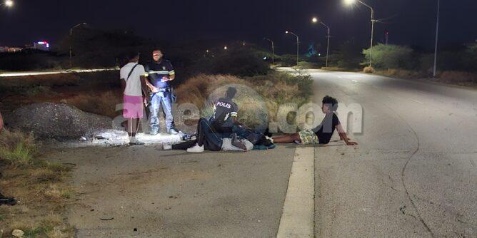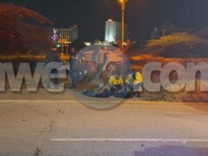 Diasabra madruga a drenta informe di un accidente cu hende herida banda di ex-House of Cheng, mesora a dirigi tanto polis como ambulans na e sitio. Na yegada di e patruya a bin compronde cu e chauffeur di un Hyundai bayendo nort cu velocidad halto a perde control baha caminda dal riba un mata. E impacto tabata fuerte te cu a lansa un ocupante pafor di e auto y e otro 2 pasaheronan patras a resulta herida, pero e chauffeur mes no a ser herida. Ora cu polis a mira cuanto herido tin a pidi pa mas ambulans. Na yegada di e ambulansnan nan a atende victimanan seriamente herida y a transporta nan pa hospital. E auto a keda practicamente “total loss”. Despues di basta rato polis ta nota un machete benta banda di e auto y polis ta kere cu esaki tabata den e auto pero e chauffeur a nenga cu ta di dje y polis a confisca esaki.