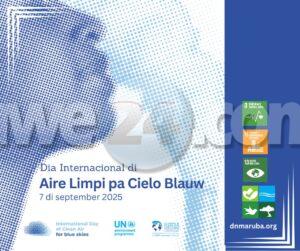 E Asamblea General di Nacionnan Uni a asigna dia 7 di september como Dia Internacional Di Aire Limpi pa Cielo Blauw na 2019. E resolucion di e Asamblea General di Nacionnan Uni ta enfatisa e importancia y necesidad urgente pa conscientisa publico na tur nivel. Pa asina promove y facilita accionnan pa mehora calidad di aire. Directie Natuur en Milieu (DNM) ta uni na e parti di conscientisacion di e topico pa asina Aruba ta informa di e efectonan cu calidad di aire tin pa salud di hende y bestia. Na Aruba casi tur dia nos ta disfruta di e cielo blauw pero hopi biaha nos no sa di e contaminacion cu por ta existi den e aire.