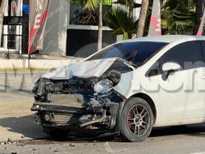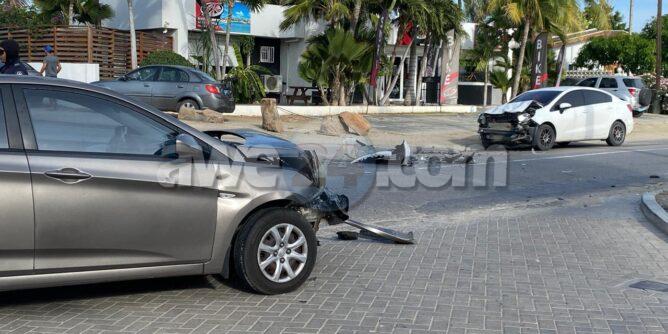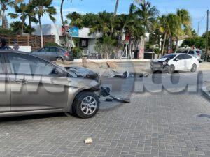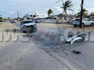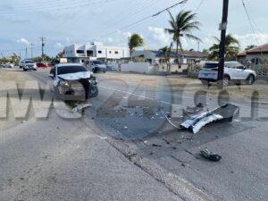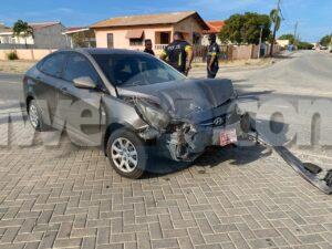 Dialuna atardi a drenta informe di un accidente cu hende herida na Rooi Santo, mesora a dirigi tanto polis como ambulans na e sitio. Na yegada di e patruya a bin compronde cu aki ta trata di un accidente unda cu e chauffeur di un Hyundai Accent a subi caminda bay banda robes y e Kia Rio cu tabata bini di zuid a purba brake pero e impacto tabata inevitable y nan a dal frontal. Debi na e fuerte impacto ambulans ambos a resulta herida. Na yegada di e ambulans nan a atende ambos victima.