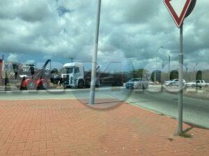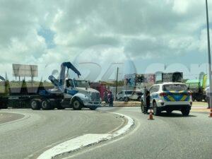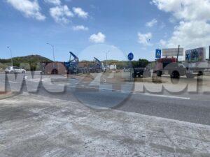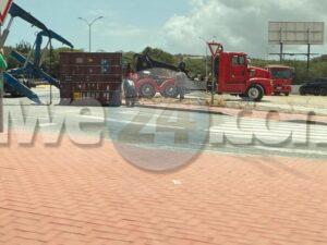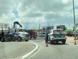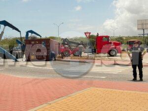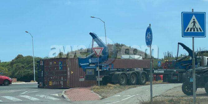 Diahuebs mainta a drenta informe di un incidente na e rotonde Mahuma, mesora a dirigi un patruya na e sitio. Na yegada di e patruya a bin compronde cu aki ta trata di un incidente unda e chauffeur di un trekker lastrando un container pero debi cu ela tuma e birada mucho duro y cortico e container a perde balans y a cay. Afortunadamente e no a cay riba ningun hende y ningun hende a resulta herida. A tarda basta rato prome cu a logra libera e container di e situacion.