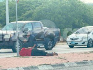 Diabierna mainta bomberonan pasando riba e caminda principal dilanti airport a nota un persona benta abao riba e isleta cu ta dividi e camindanan mesora nan a drenta accion y a brinda aistencia y yudansa na un persona conosi den e bario di Wayaca cual na varios ocasion ta dal abao y keda abao. Nan a pidi pa polis y un ambulans pa asina bin atende. Na yegada di e ambulans nan a atende y a transporte pa hospital.