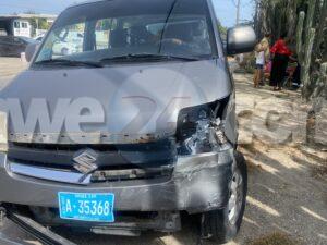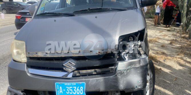 Diabierna atardi a drenta informe di un accidente cu hende herida na e crusada banda di ex-Weng Kee na Piedra Plat, mesora a dirigi tanto polis como ambulans na e sitio. Na yegada di e patruya a bin compronde cu aki ta trata di un accidente pa falta di preferencia unda e dama chauffeur di e Suzuki APV Pass Van a bay subi e crusada y a malcalcula e velocidad y distancia di un Toyota Yaris y esaki a bin dal e Van mande pabao lagando e chauffeur herida. Na yegada di e ambulans nan a atende e dama na e sitio mes.