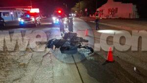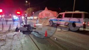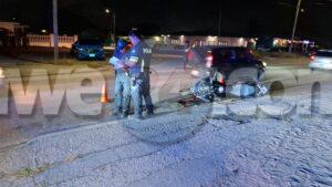 Diabierna anochi a drenta informe di un accidente cu hende herida na Santa Cruz banda di Botica Central, mesora a dirigi tanto polis como ambulans na e sitio. Na yegada di e patruya a bin compronde cu aki ta trata di un accidente unda un chauffeur burachi coriendo cu un pick-up a bira dilanti un brommer y esaki a dal e pick-up y a cay abao mientras e pick-up a sigui core bay bandonando e sitio un polis a sigui bay tras di e pick-up y a in hay’e ta baha for di e vehiculo. Mesora polis a detene pa a sigui core bay despues di un accidente cu hende herida. Na yegada di e ambulans nan a atende e motociclista y a transporte pa hospital.