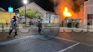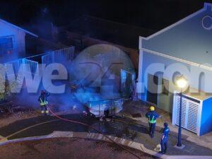 Dialuna madruga a drenta informe di un baki sushi cual lo ta na candela banda di Plaza Bruno Arends, mesora a dirigi tanto polis como ambulans na e sitio. Na yegada di e patruya a bin nota cu e baki lo ta full na candela y bisiña purbando di paga esaki cu nan mesun slang cu awa. Polis a hala nan atencion pasobra nan tabata hopi cerca y tabata tin explosion sporadicamente mientras bomberonan a presenta. Na yegada di bombero mesora a inicia cu un combate fuerte y a logra paga esaki.