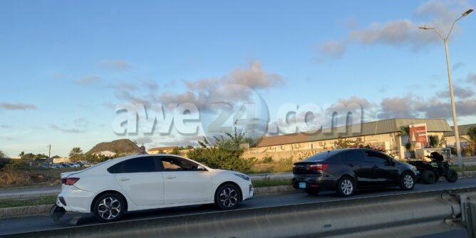 Diaranson atardi a drenta informe di un accidente riba E.J.”Watty” Vos blvd. yegando e rotonde na Wayaca, mesora a dirigi un patruya na e sitio. Na yegada di e patruya a bin compronde cu aki ta trata di un accidente unda cu chauffeur no a regula su velocidad ni a mantene distancia a bay dal tras di e vehiculo su dilanti y consecutivamente esaki a bay dal e otro mas dilanti. Afortunadamente ningun hende a resulta herida.