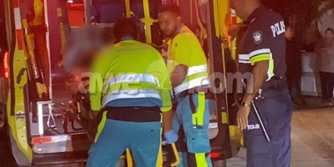 Diahuebs anochi a drenta informe di cu un homber di 63 aña a hinca un cuchiu cu menos bon intencion na su abdomen, mesora a dirigi tanto polis como ambulans na e sitio. Na yegada di e patruya a tuma nota di e situacion y a pidi e ambulans cu mas urgencia. Na yegada di e ambulans nan a atende e victima y a transporte cu urgencia pa hospital.