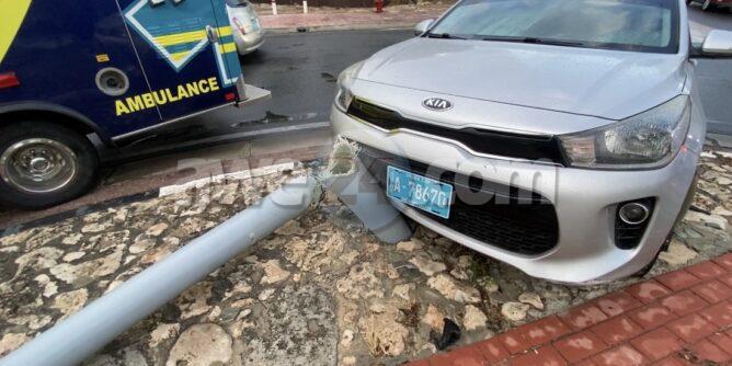 Diabierna mainta a drenta informe di un accidente cu hende herida na e rotonde di Ponton na Santa Helenastraat, mesora a dirigi tanto polis como ambulans na e sitio. Na yegada di e patruya a bin compronde cu e e dama chauffeur di e KIA Rio lo a slip na e rotonde y a bai dal den palo di luz. E impacto tabata fuerte y e a dal su pecho nan e stuurwiel. Na yegada di e ambulans nan a atende cu e victima.