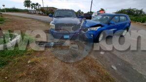 Diabierna mainta a drenta informe di un accidente cu hende herida na e crusada di Sabana Grandi, mesora a dirigi tanto polis como ambulans na e sitio. Na yegada di e patruya a bin compronde cu aki ta trata di un accidente unda un chauffeur di un Hyundai Creta a slip riba e caminda muha y a bay dal riba un pick-up yegando e crusada. Debi na e impacto e dama chauffeur di e Creta a resulta herida. Na yegada di e nan a atende e dama herida.