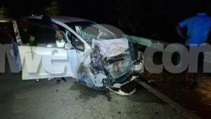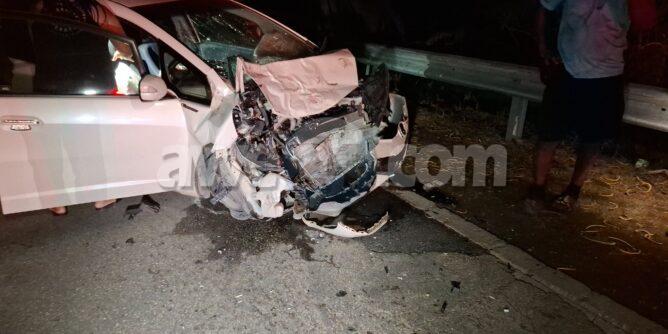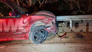 Diabierna anochi a drenta informe di un accidente cu hende herida na e birada riba e caminda di Noord pa Sabana Liber, mesora a dirigi tanto polis como ambulans na e sitio. Na yegada di e patruya a bin compronde cu aki ta trata di un accidente unda cu un pick-up maneha pa un chauffeur posiblemente bao influencia a perde control a dal un Honda Accord shinishi y despues bay dal frontal riba un Honda Fit blanco y finalmente bay dal riba e “vangrails”. Debi na e fuerte impacto un dama pasahero turista den e pick-up a resulta herida, na yegada di e ambulans nan a atende e dama turista pero como cu e no kier paga nan no a transporte pa hospital. Un rato despues un familiar di e turista a yega y a transporte pa hospital. Polis a detene e chauffeur pa a core auto bao influencia.