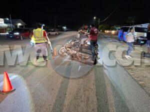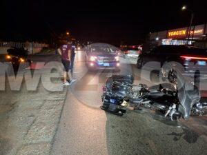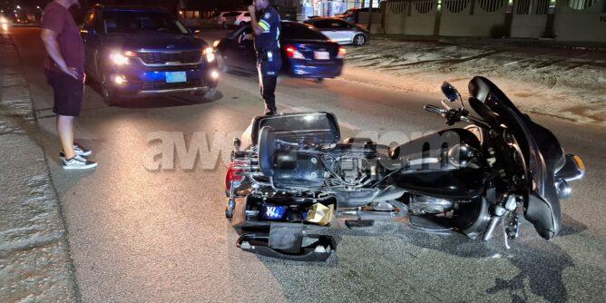 Diaranson anochi a drenta informe di un accidente na Tarabana dilanti YongXin Supermarket, mesora a dirigi patruya na e sitio. Na yegada di e patruya a bin compronde cu aki ta trata di un accidente unda un auto a subi caminda sin duna preferencia na e motociclista cu tabata riba caminda di preferencia. E auto a dal e benta abao y a core bay. E motociclista kiermeen ta awe ela cumpra e Harley Davidson y a segur’e y cununca e tabata envolvi den un accidente. Na momento di bay impacta e motociclista a bula y a cay y rasca algun parti di su curpa. E no tabata desea di haya atencion medico tampoco. Polis a tuma e datonan y a keda di busca e grabacion di e camaranan di seguridad den e area pa asina por logra haya e auto cu a core bay.