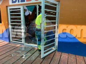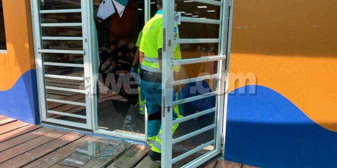 Diahuebs merdia a drenta informe di cu un cliente a pasa door di glas na Bizbox y a corta su mes, mesora a dirigi un ambulans na e sitio. Na yegada di e ambulans nan a haya e victima herida limpi caba y como cu no tabata nada grave nan a control’e na e sitio mes y no tabata necesario pa ambulans hib’e hospital.