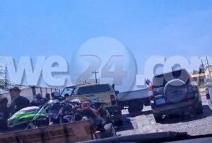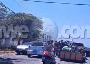 Diabierna atardi a drenta informe di un accidente cu 3 vehiculo envolvi, mesora a dirigi un patruya na e sitio. Na yegada di e patruya a bin compronde cu aki ta trata di un accidente unda cu un truck hayando rijles pa un of otro motibo a dal paga y a keda para meymey di caminda un pick-up lastrando un trailer cu brommernan riba dje no por a evita e impacto aki y a bay dak riba e truck. na e mesun momento un s.u.v. tambe a bay dal riba e truck. Afortunadamente ningun hende a resulta herida.