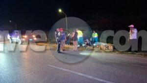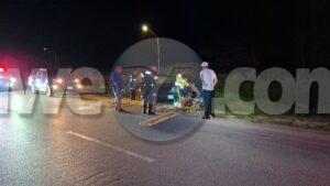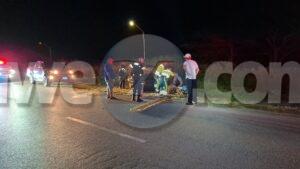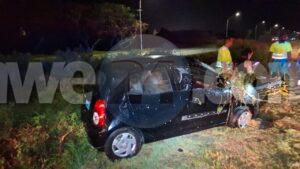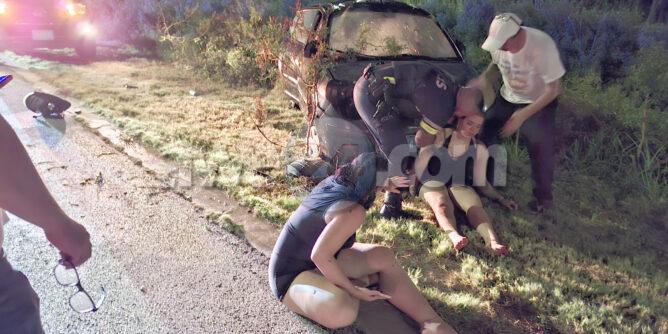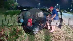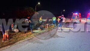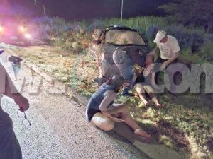 Diasabra madruga a drenta informe di un accidente cu hende herida riba Sasakiweg, mesora a dirigi tanto polis como ambulans na e sitio. Na yegada di e patruya a bin compronde for di testigonan cu e dama chauffeur cu un otro dama ocupante tabata bini for di Mc. Donalds yegando e rotonde Bubali pero a perde control bolter 2 biaha cay bek riba su wielnan cu 90 grado bira. Debi na e impacto e 2 dama a resulta herida y a bay off y no tabata corda di unda nan a bini. Na yegada di e ambulansnan nan a atende e victimanan y a transporta nan pa hospital.