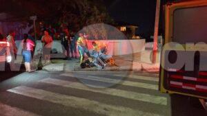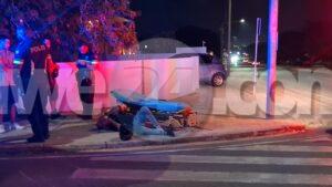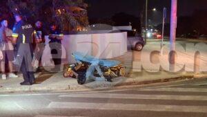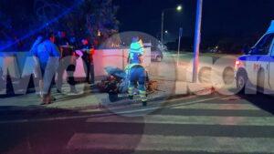 Diasabra anochi a drenta informe di un accidente cu hende herida na e rotonde Santa Helenastraat, mesora a dirigi tanto polis como ambulans na e sitio. Na yegada di e patruya a bin compronde cu aki ta trata di un accidente unda un brommer yegando e rotonde cu velocidad a bay subi e rotonde pasa tras di un auto pa bay pas’e pero a malcalcula e intento y a bay dal na e porta patras banda robes di e auto y e motociclista a resulta bastante herida. Na yegada di e ambulans nan a atende e victima y a transporte pa hospital.