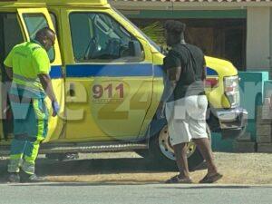 Ambulans a bay Sero Janchi pa un homber cu a haya calamber na su pia bay na stoma y awor ta saca