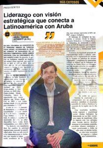 “E decision mas transformativo tabata cambia e strategia regional pa amplia conectividad aereo. Esaki no solamente a trece Latino Americanonan mas cerca di Aruba, pero tambe a impulsa e desaroyo economico di e isla, di cual turismo ta representa 80% di e GDP”, asina e hoben ehecutivo a conta e revista Colombiano.