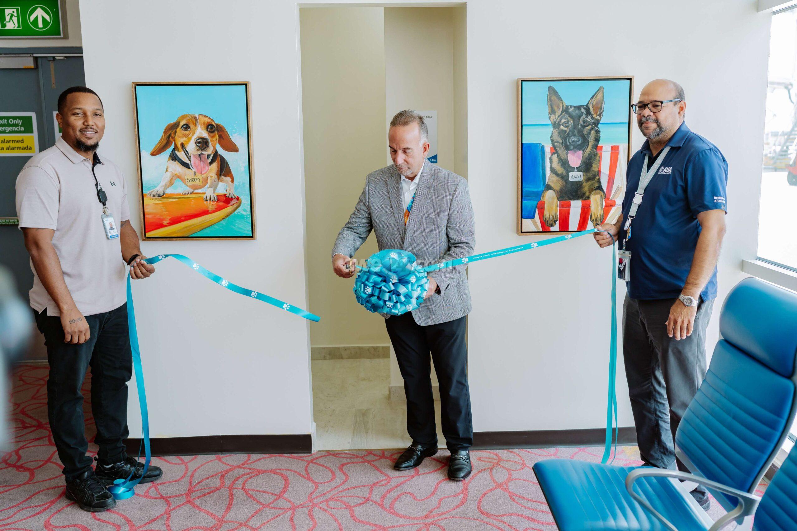 Oranjestad, Aruba – Aruba Airport Authority N.V. (AAA) is proud to announce the official opening of three new Pet Relief Areas inside Aeropuerto Internacional Reina Beatrix (AUA), designed specifically for departing passengers traveling with pets. These facilities offer a clean and convenient space for pets to relieve themselves before boarding their flights, enhancing the travel experience for pet owners.