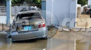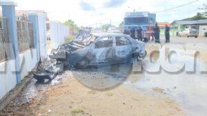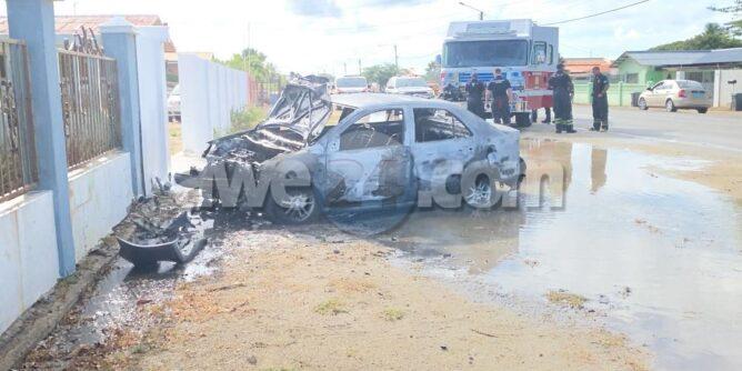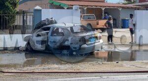 Diadomingo mainta a drenta informe di un accidente unda un auto a pega na candela na Pos Chikito, mesora a dirigi tanto polis como bombero na e sitio. Na yegada di e patruya a bin compronde cu aki ta traya di un accidente unda un chauffeur a perde control baha caminda bay dal riba muraya di un cas y kibra 2 meter di awa y e auto diripiente a pega na candela mientras e chauffeur a core sali for di esaki. E auto a pega mesora na candela y a bira grandi te kima por completo. Na yegada di bombero por a djies paga e candela. Afortunadamente e chauffeur a sali ileso. W.E.B. a ser avisa pa bin drecha e meternan di awa.