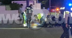 Diadomingo pa mas o menos 10:30 di anochi, central di polis ta wordo notifica di un accidente na altura di Cayena Mall entre un auto y un brommer.