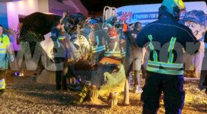 Diadomingo anochi laat a drenta informe di un accidente pisa cu hendenan herida na Saliña Cerca, mesora a dirigi polis y ambulans como tambe e equipo di rescate di bombero. Na yegada di e patruya a bin encontra cu un Toyota Rav-4 gekentel den banda y cu 3 persona herida y pega aden. Na yegada di e ambulans a cuminsa atende nan for di afo mientras na yegada di bomberonan mesora a inicia cu trabaonan pa saca e hobennan cu tabata pega. Ora a caba di saca tur 3 ambulans a hibanan pa hospital.
